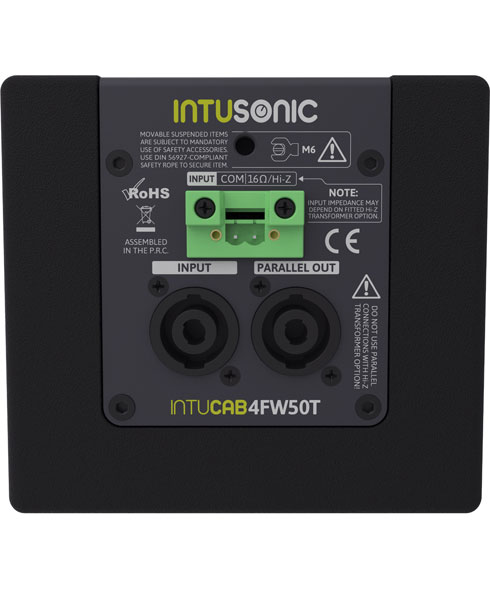 The INTUCAB™ 4FW50T is a wideband background music speaker for indoor applications where an unobtrusive appearance and mechanical ruggedness must be combined with above-average SPL and pristine sound quality. With 16 Ohms of impedance, it is perfectly suited for low-impedance applications with up to 4 speakers in parallel, and the optionally available input transformer kit makes integration with 100V systems easy as well. Catering for the ease of cabling in fixed installations, an additional 5.0mm terminal strip is provided. The mounting options include M6 and M10 mounting points, allowing for suspended mounting, truss mounting and bracket mounting. Available in black and white structural paint finish for further flexibility. For fullrange applications, a combination with the INTUCAB™ 8SM300T Subwoofer is recommended.