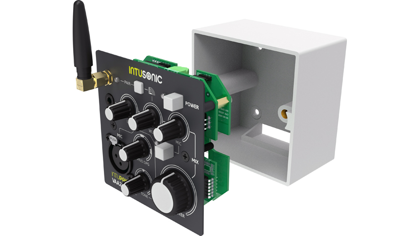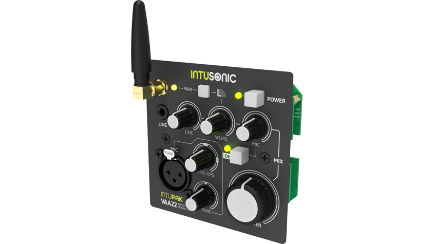 The INTUPAK™ VAA22 is the smallest and most unobtrusive solution to audio connectivity and preamplification in any room, fitting into a standard BS5733 wall box offering flush or surface mount options. It offers three audio sources, starting with a 3.5mm stereo TRS input, complemented by a Linkoustic™ wireless audio link input, and completed by a microphone input. All sources can be mixed at the desired ratio, and the master volume can be set by a large dial. The microphone input offers extra versatility with its on/off switch, tone control and adjustable talkover (priority) feature, allowing to automatically attenuate the program material when speaking into the microphone. The VAA22 is highly configurable via internal jumpers for Mic gain, Mic HPF, Mic phantom power and Master stereo/mono settings. The VAA22 does not include any internal power supply and is recommended to be combined with the Intusonic™ SPA22 remote power supply station.