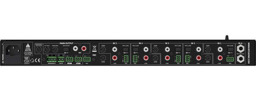 - 5 stereo inputs switchable balanced-mic/unbalanced-line